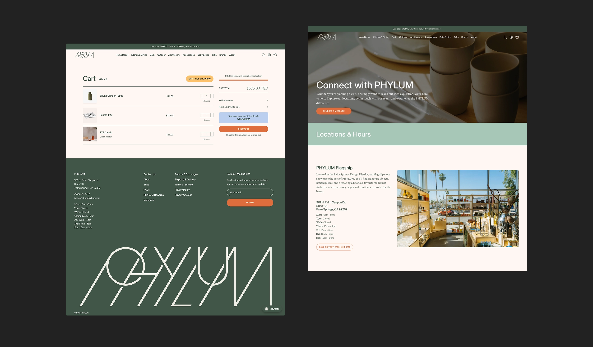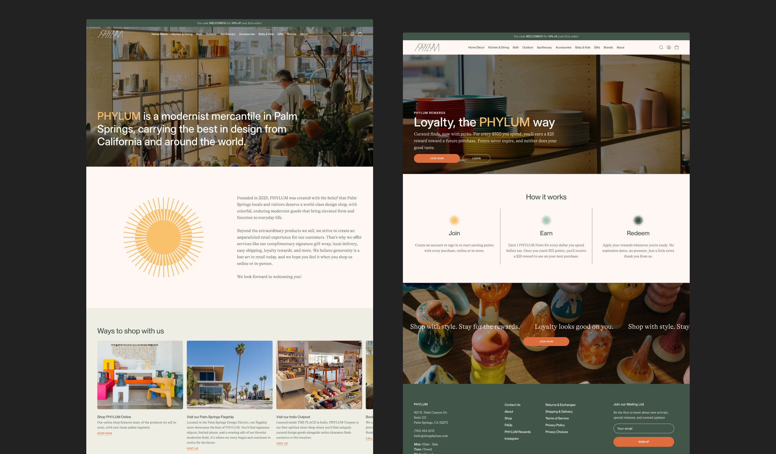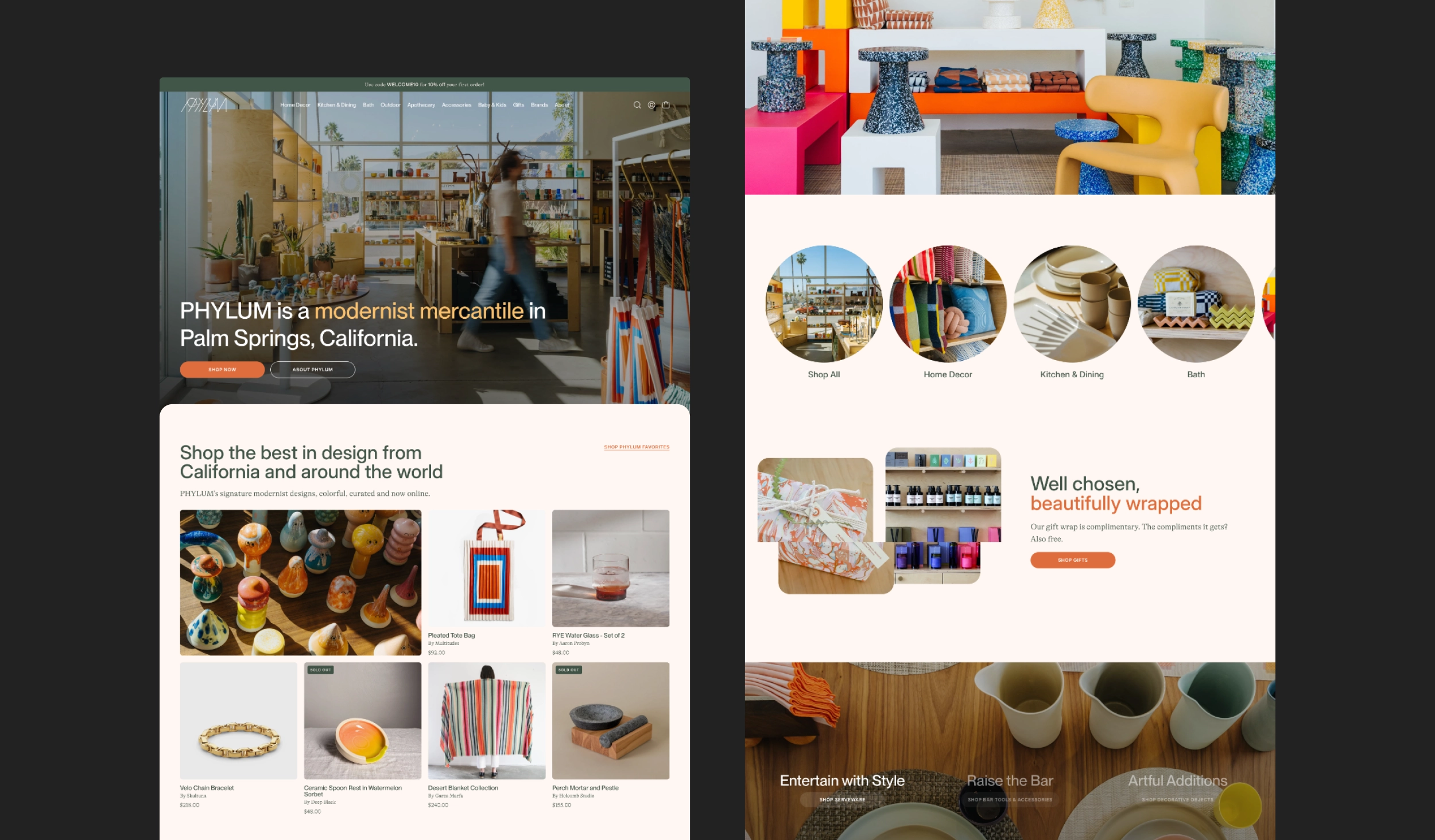 We partnered with PHYLUM, a Palm Springs–based mercantile known for its curated modernist design, to create an e-commerce presence as refined as its in-store experience. We designed and developed a custom site that showcases their premium products beautifully while integrating seamlessly with their in-store POS system. By blending thoughtful design with tailored functionality, we built a platform that captures PHYLUM’s signature personality and makes shopping effortless for their luxury clientele.
